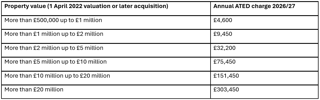 ATED Bands and Charges for 2026/27